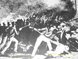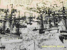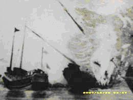 1840年4月,英国议会通过发动侵华战争决议案,6月发动鸦片战争,图 为1841年1月英军进攻虎门沙角炮台