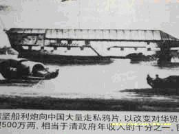 西方列强凭借坚船利炮向中国大量走私鸦片,图为停泊在广东海面的英国鸦片船