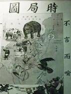 1898年爱国华侨谢瓒泰绘制了《时局图》,画面上熊代表俄国,虎代表英国,蛇代表德,蛤蟆代表法国,